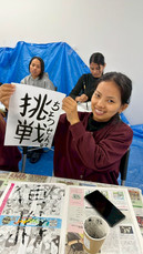 In Japanese elementary schools, calligraphy classes are a common part of the curriculum. Today, we got to experience what it’s like to be a Japanese elementary school student. This year our second year students got to try out their calligraphy skills learned during these years of Japanese Language lessons. Everyone wrote their favorite kanji. The most popular one are 父母 (ふぼ、fubo) and 両親 (りょうしん、ryoushin), both meaning "Parents", and 家族 (かぞく、kazoku), meaning "Family".